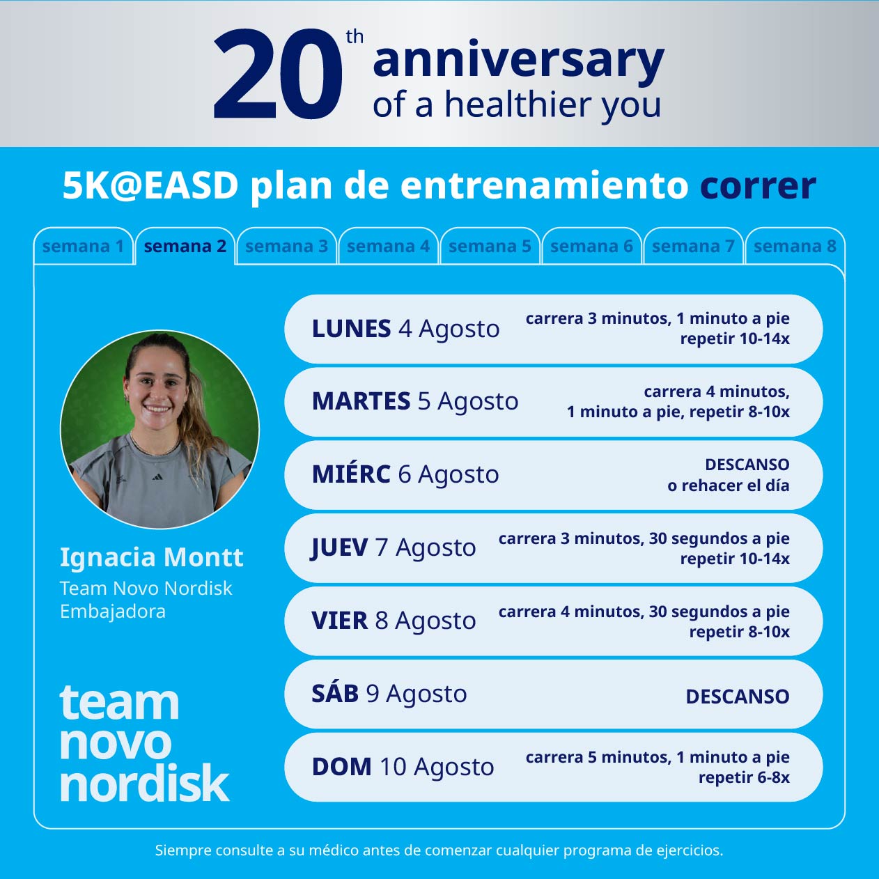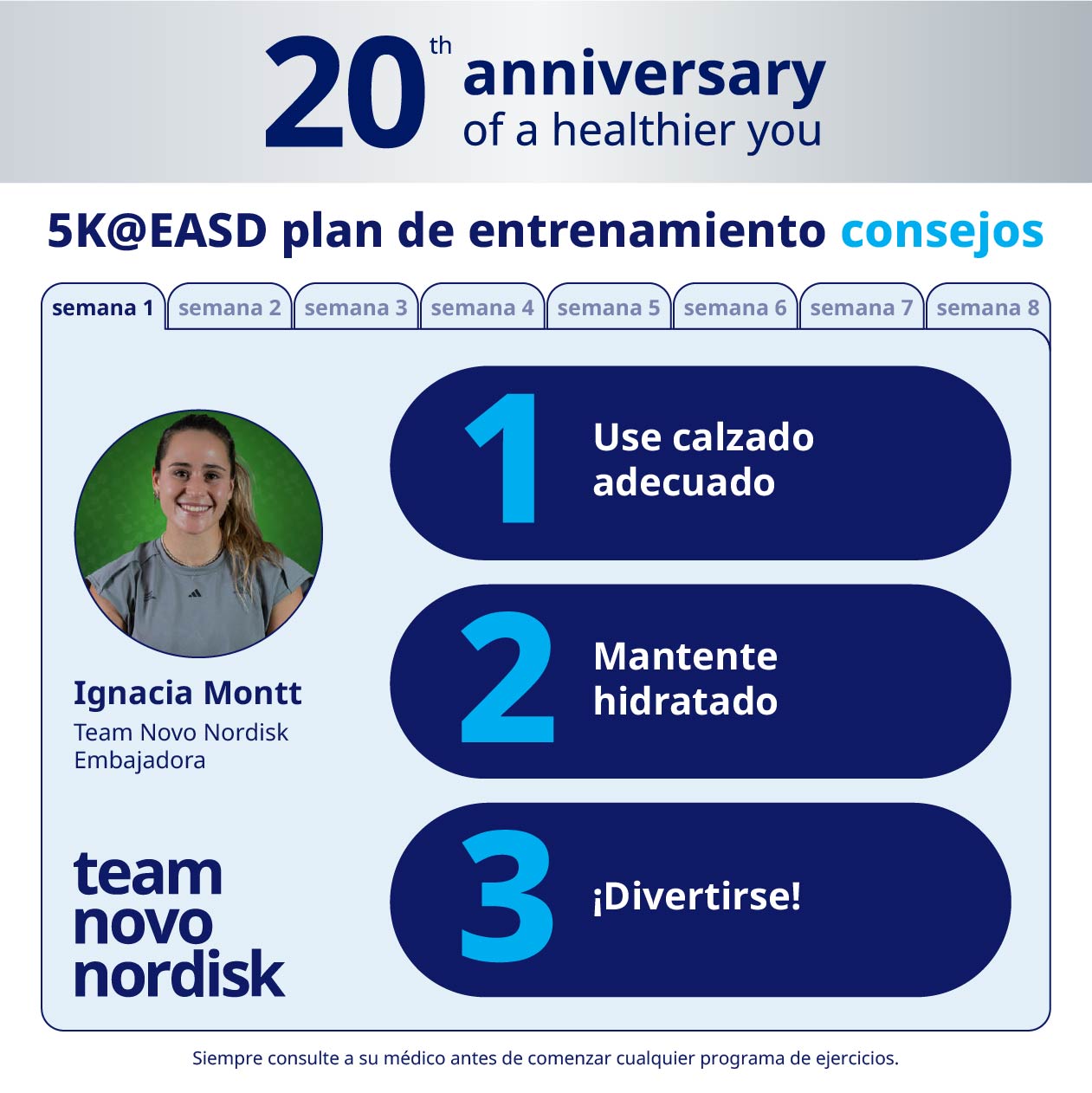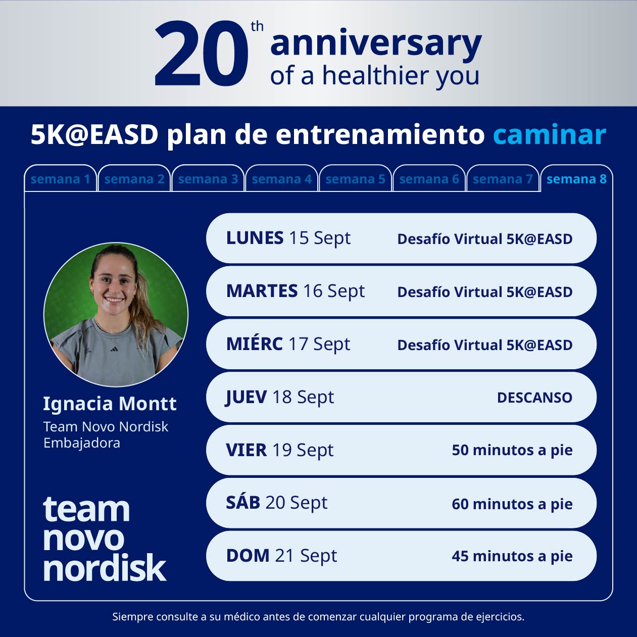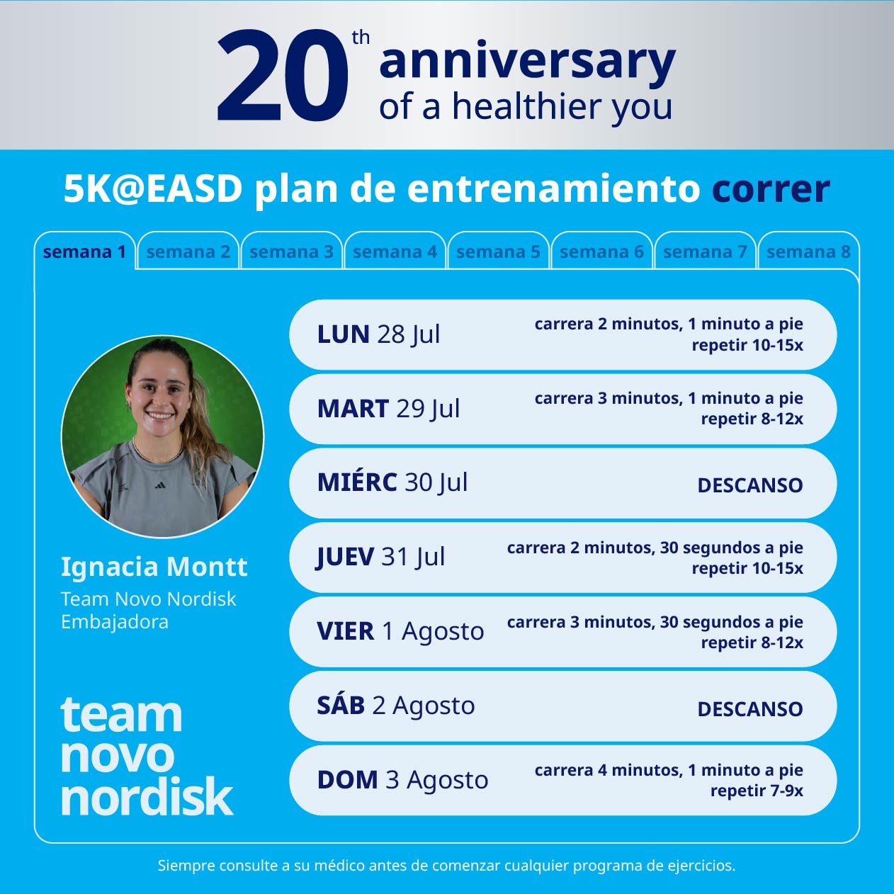 Dé el primer paso con el apoyo de los planes de entrenamiento GRATUITOS de 5K de 8 semanas del equipo Novo Nordisk para ayudarle a prepararse para el desafío virtual 5K@EASD.
