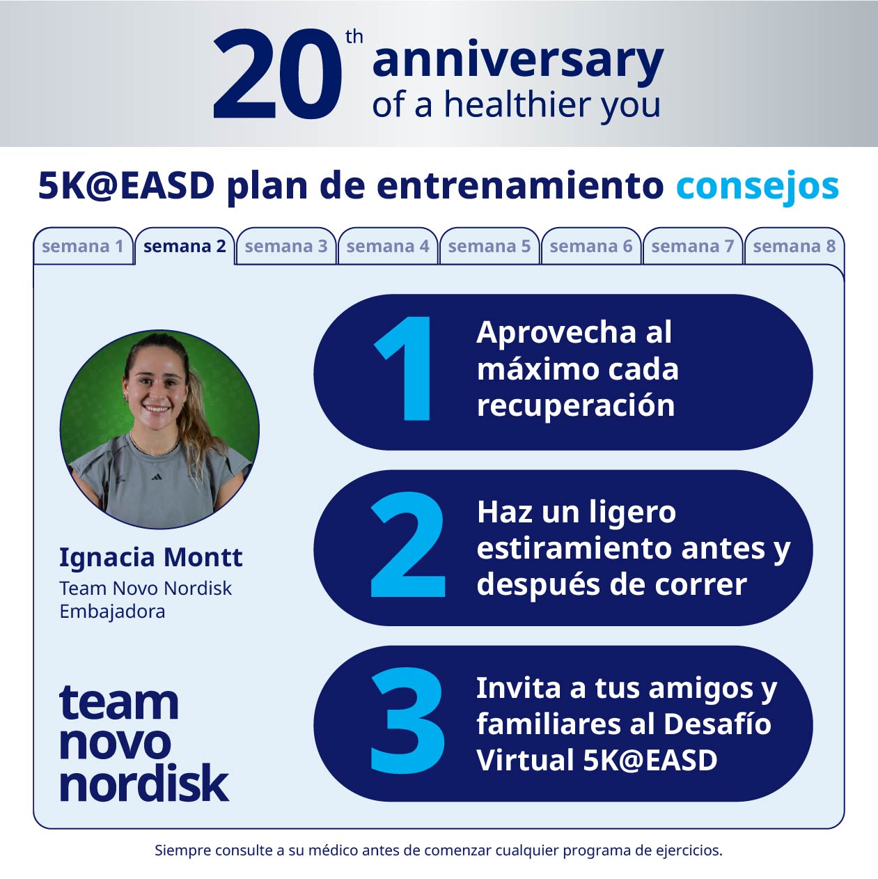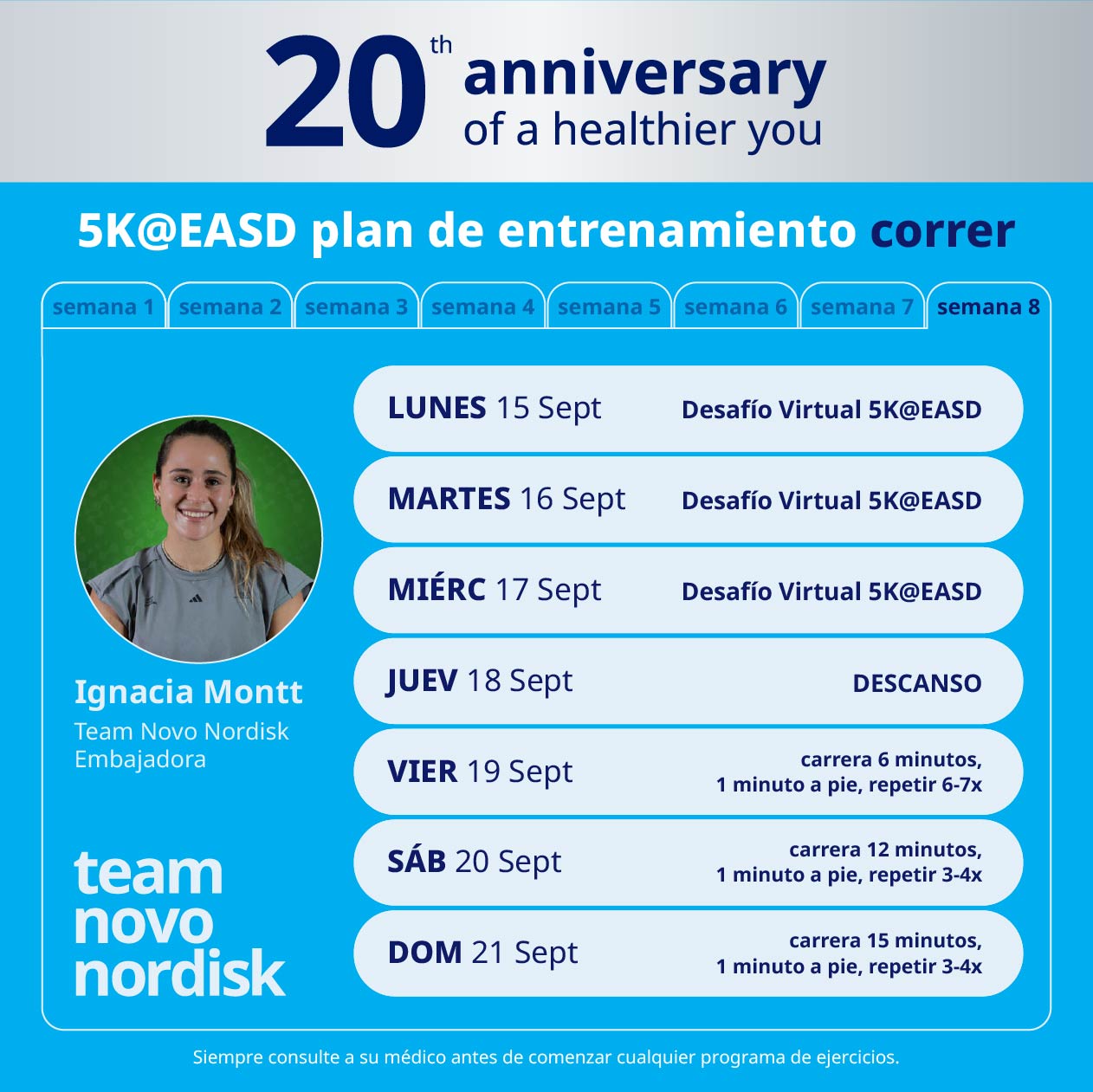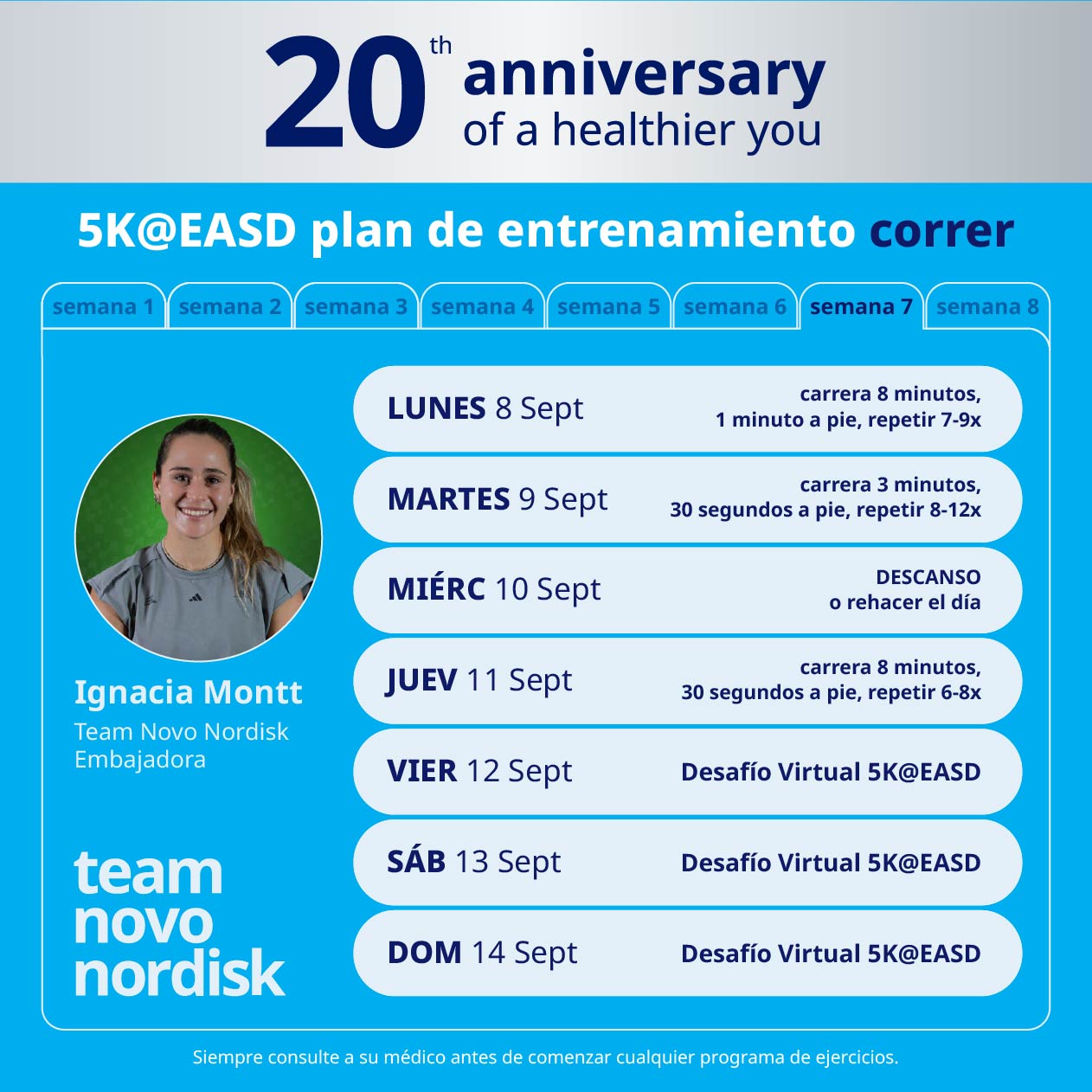 Dé el primer paso con el apoyo de los planes de entrenamiento GRATUITOS de 5K de 8 semanas del equipo Novo Nordisk para ayudarle a prepararse para el desafío virtual 5K@EASD.