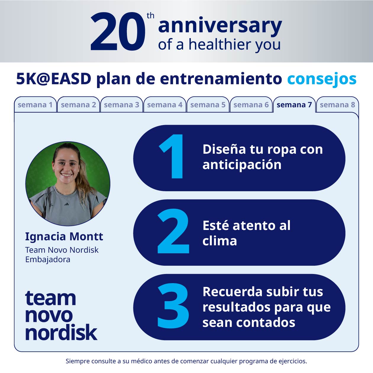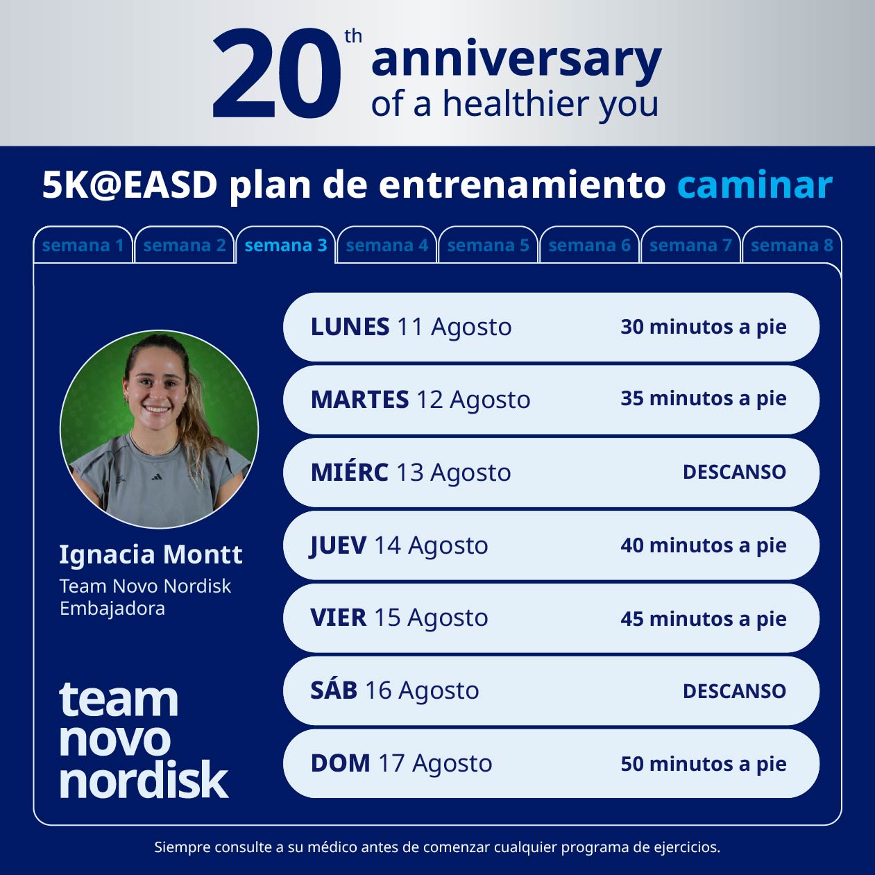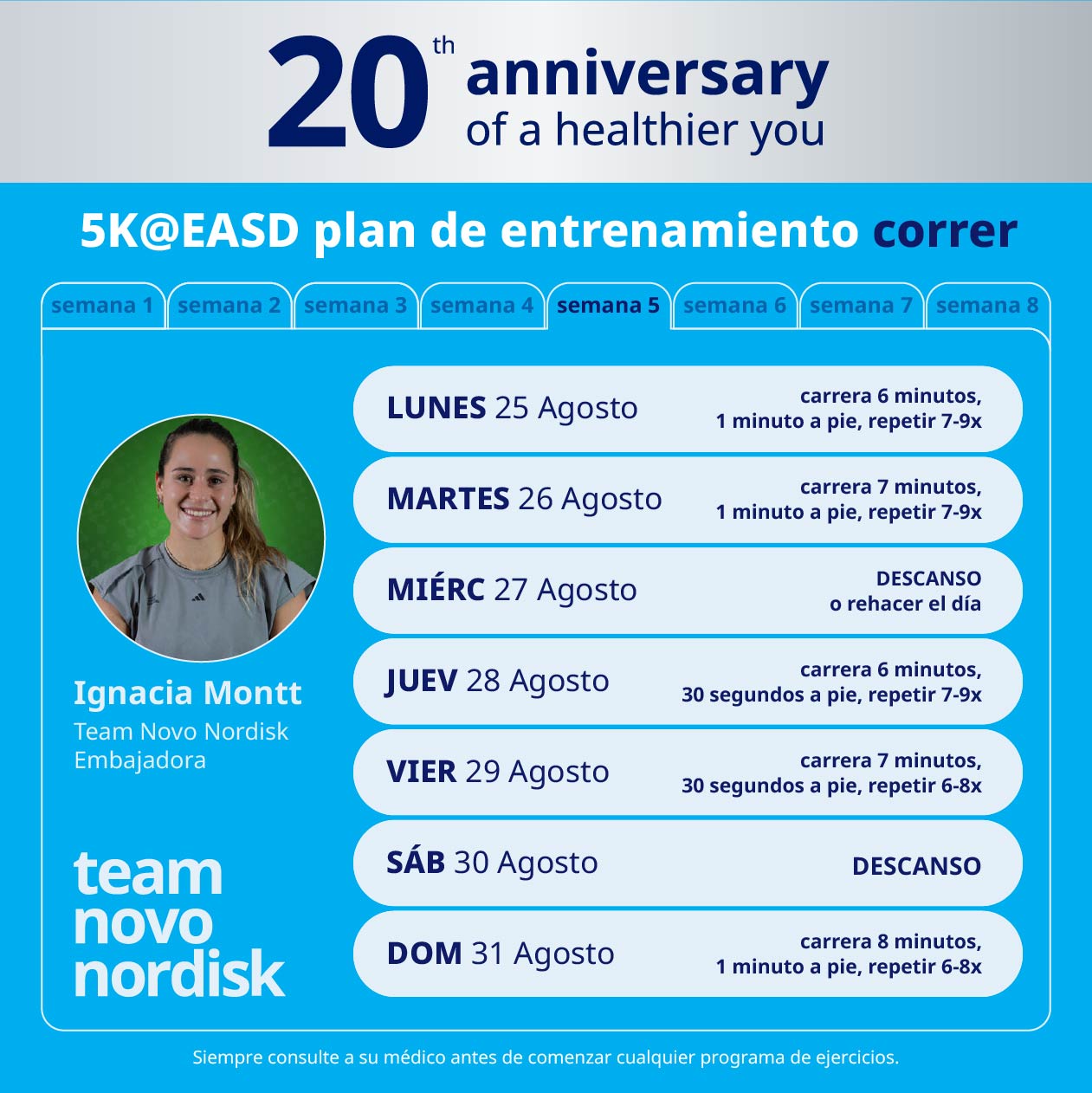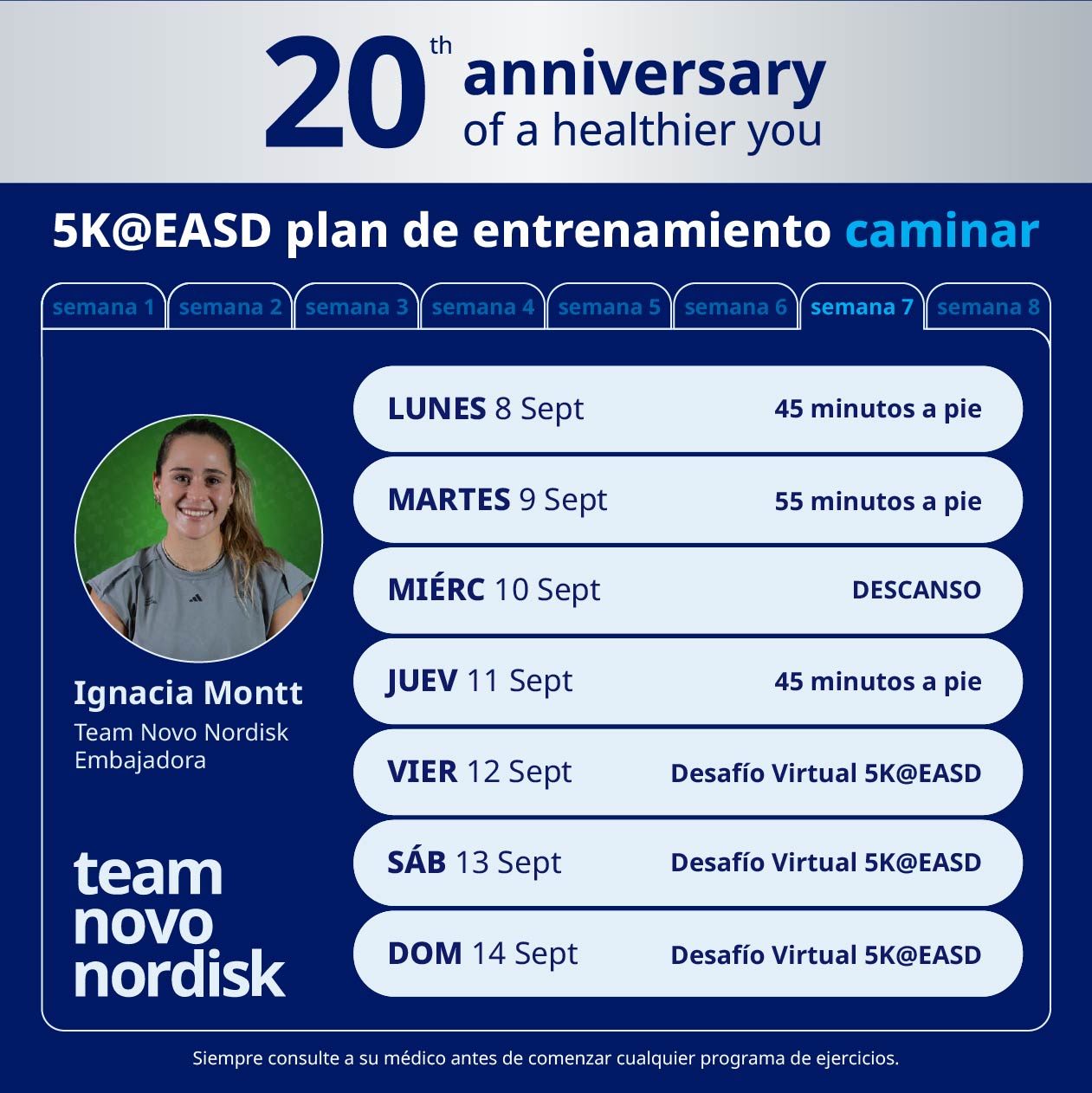 Dé el primer paso con el apoyo de los planes de entrenamiento GRATUITOS de 5K de 8 semanas del equipo Novo Nordisk para ayudarle a prepararse para el desafío virtual 5K@EASD.